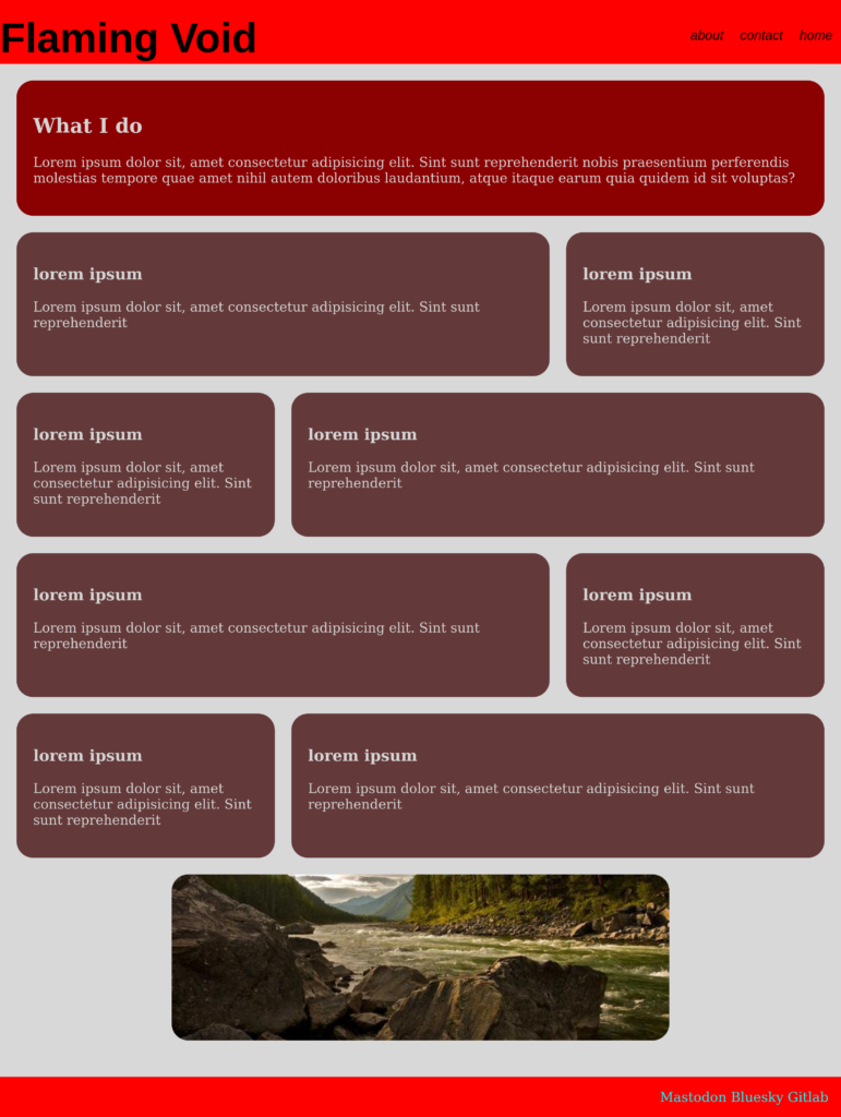 I’ve been going through CSS on free code camp and watching a Youtuber named Kevin Powell doing that I’ve learned a lot thus the need for a fake website.